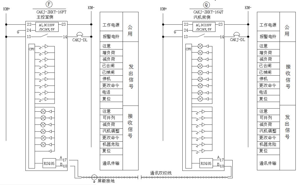 通訊連接方式接線圖(產品型號CAKJ-ZHXT-16FT,CAKJ-ZHXT-16QT)