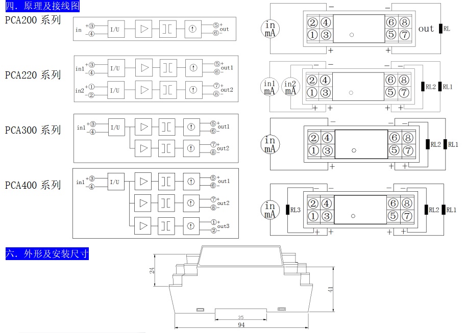 PCA200系列無源直流信號(hào)隔離模塊(安全柵),以被測(cè)直流電流信號(hào)作為能源,并電磁隔離轉(zhuǎn)換成按線性比例輸出直流信號(hào)的模塊。