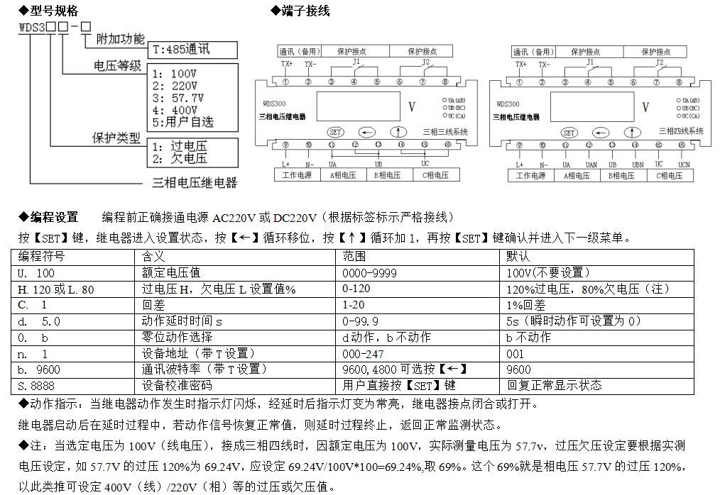 WDS300三相電壓繼電器,適用于高壓35kv,10kv或低壓400v線路及用電設(shè)備,作為三相電壓檢測及控制設(shè)備。且具備延時動作功能,檢測精度高,是高低壓系統(tǒng)簡便可靠的三相過電壓繼電保護(hù)。