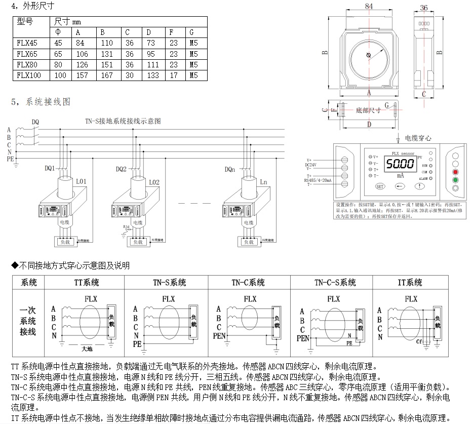FLX□□-500測量電流范圍:0.5mA-500mA(45HZ-400HZ)